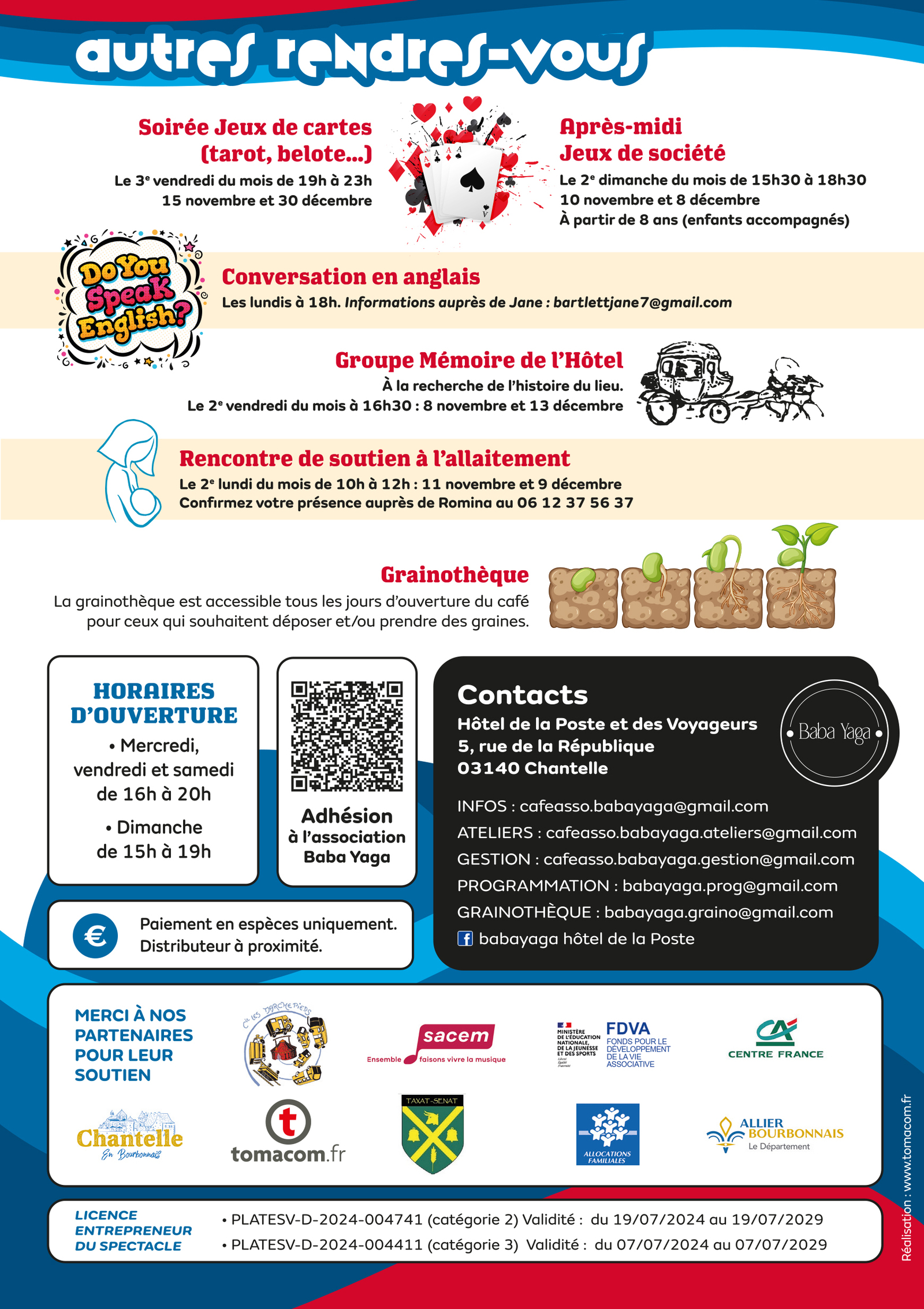 Programme de l'Hôtel de la Poste et des Voyageurs / NOVEMBRE-DECEMBRE